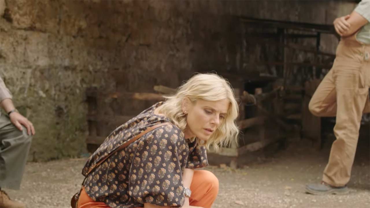 Caroline appears alongside Alan to help him find Hercule Poirot’s walk.
